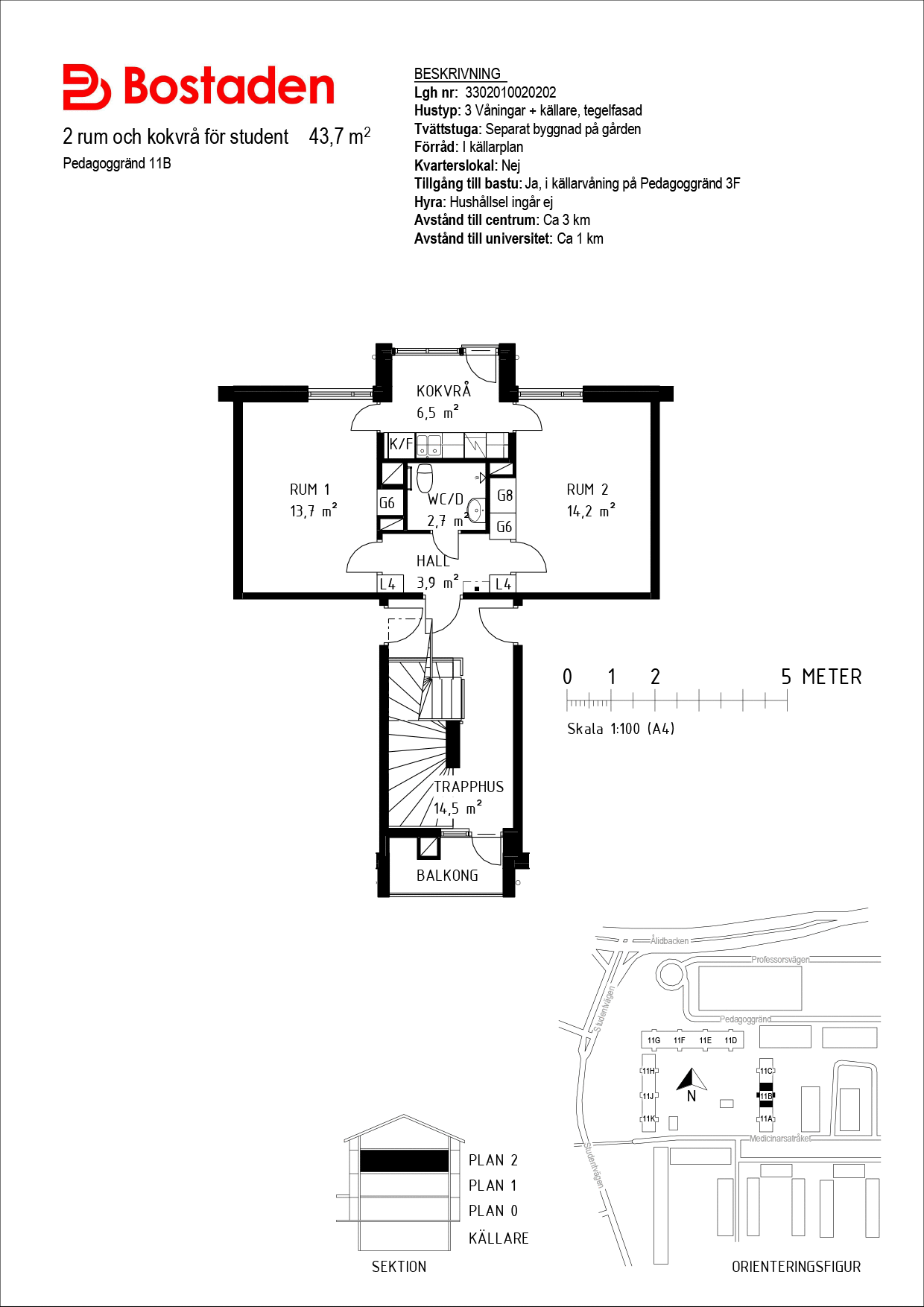 • Avstånd till centrum/universitetet: Ca: 3 km / 1 km
